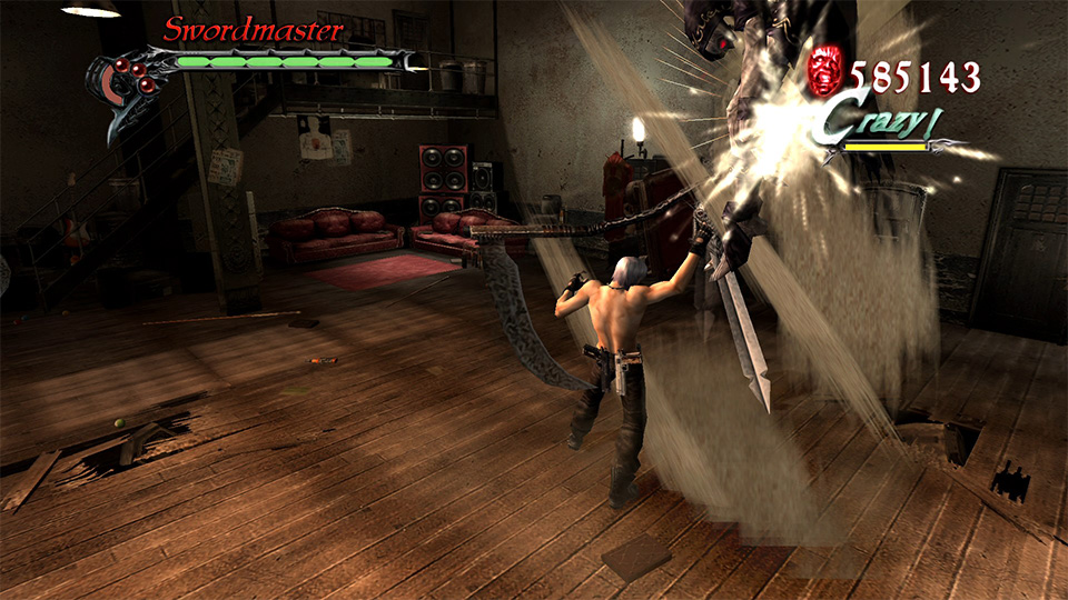 Combos are always a big deal when it comes to character action games, but Devil May Cry really prides itself on the variety of it’s combos and just how complex they can be. I won’t be going in depth on them here, their complexity is enough to warrant their own post honestly, but the combos need to be mentioned because they play a big role with the series’ Style System. The Style System is a ranking system for the combat and combos in all the DMC games. It uses a letter ranking system that starts at D and goes up to A before going beyond that with S, SS, and SSS. The system works based on your combo variety with your rank increasing when you change up which combo you’re doing. You can also increase it by dodging attacks at the perfect time or taunting. It basically goes up when you do anything stylish as you might have guessed! Doing the same combo over and over again, regardless of how effective it is, will lower your Style Ranking though. This helps to avoid a problem that often plagues combo heavy games. It gives the player a reason to not spam one super powerful combo and it does this without doing anything too drastic to the game play. They could have very easily made a combo do less damage the more you repeated it or something like that, but instead it’s now the player’s choice to be stylish and change things up rather than feeling like the game is forcing you. After all, you don’t need a certain style rank to continue or anything, the only thing it really impacts is how much you are rewarded at the end of a level. Despite knowing that, it never feels good to see that ranking go down even if it would be way easier to just keep using one combo that is strong and very clearly works well. But it still feels like it’s the player’s choice to change things up and be stylish. Which actually helps them get closer to being like Dante! Dante is shown to be extremely powerful and that he could easily wipe the floor with any basic enemy that comes his way, and even some bosses. But that wouldn’t be fun for him. Instead he enjoys toying with the enemies, taunting them and showing off the whole time. He’s not having fun if he’s not being stylish, and now the player is feeling the same way!