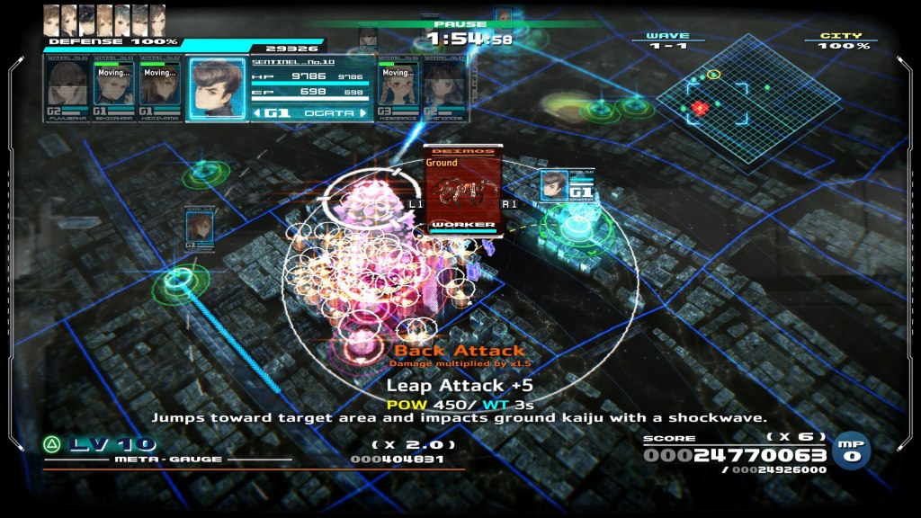 But let’s move on to the game’s other big section and talk about Destruction. As stated before, this is the RTS section of the game where you have to use the Sentinels to defend the city from the kaiju, either by destroying them all or by surviving long enough for the timer to run out.