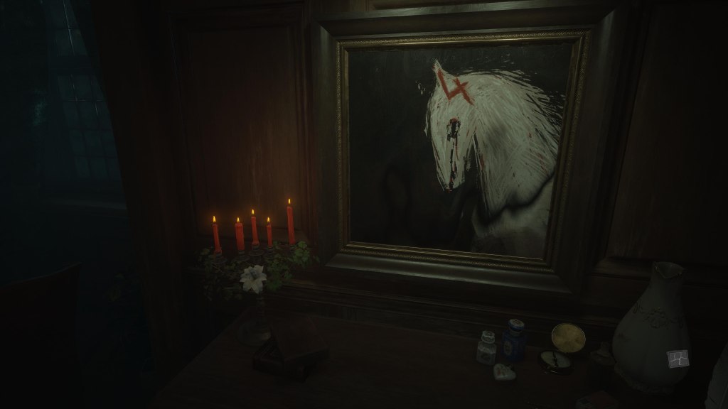 The story, beyond explaining why you’re trying to finish this painting, doesn’t do much for the actual game play. Some of the game’s spooks certainly are centered around the family but there isn’t much of a reason why beyond the idea that the Painter is just crazy. And while there are lots of paintings in the house you explore, none of them are used in particularly interesting ways? There was literally a single puzzle that I thought was cool. It’s a puzzle where you need to look through different picture frames that all showed different things around the room. Looking at them in the frames would bring them into the room. So you have to go from frame to frame looking at what you need next and basically pulling them from the frames into the room. That’s a cool idea! And while it isn’t exactly painting themed, it uses picture frames! That’s kind of close to paintings! This however is the one and only time I remember enjoying a puzzle. Beyond that most of them are basically go find this key item or items in order to progress. Or look around for a code to unlock a lock or call the right number on the phone. Uninspired is the best way I can describe these puzzles which is bizarre given that the game has a pretty clear theme with painting and family. You’d think that would help inspire plenty of puzzles but it really doesn’t and it makes the game a complete slog to get through. And no, adding in the wife to slowly chase you does not add any tension to any of the puzzle moments, especially when you can shine a light at her and have her fade away for a bit.
