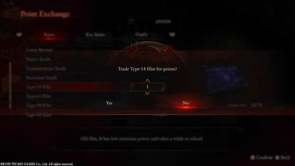All of the game’s save points have a point store where you can spend the points you earn in combat. However, the only things you can buy are upgrades to your charms, some Herbal Medicine for healing, and some stuff for the photo mode. And that’s it. At least, on your first playthrough. On New Game Plus, and only New Game Plus, the points store opens up vastly, letting you buy upgrade materials, outfits, and most importantly, film! This meant that my second playthrough on Nightmare difficulty felt way more balanced and way more fun than my first playthrough despite Nightmare being the hardest difficulty!