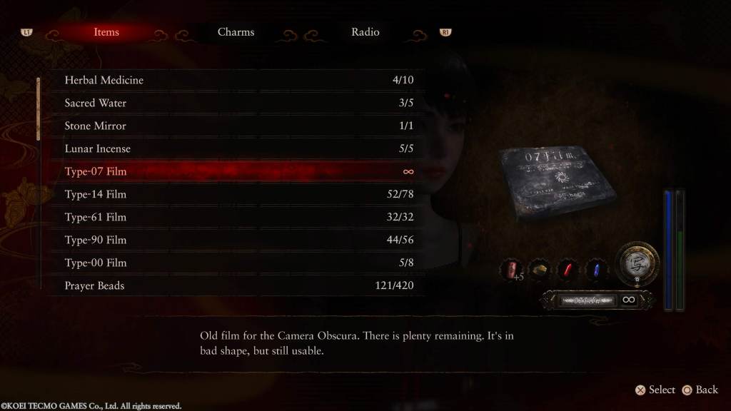 Ghosts are so much harder to take down now! This is most noticeable at the start of the game when you haven’t upgraded your Camera yet. Upgrading your damage and how many focal points you have helps a lot but not enough. It never makes up for the lack of film. And on that note let me explain the film a bit more. In most other survival horror games you’ll usually find bigger and better guns as you go on. Like in Resident Evil you’ll only start with a pistol and knife but by the end you usually have shotguns and machine guns and the like to help with the tougher enemies. In Fatal Frame you only ever have the Camera Obscura but you do get different types of film. Your types of film are usually Type 07, 14, 61, 90, and 00. Sometimes there are types between those like 36 but you get the idea! The higher the number, the more powerful and rare the film is. Not including 00 which is the strongest type around. Every film type is limited besides 07. Think of 07 as your knife in a Resident Evil game. It’s the film you use when you don’t have any other option as you have an unlimited amount of it but it’s very weak to compensate. This has always been the case in every Fatal Frame, but never has it felt this weak and this annoying to use.