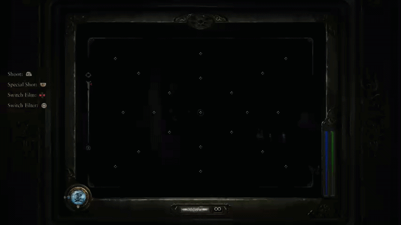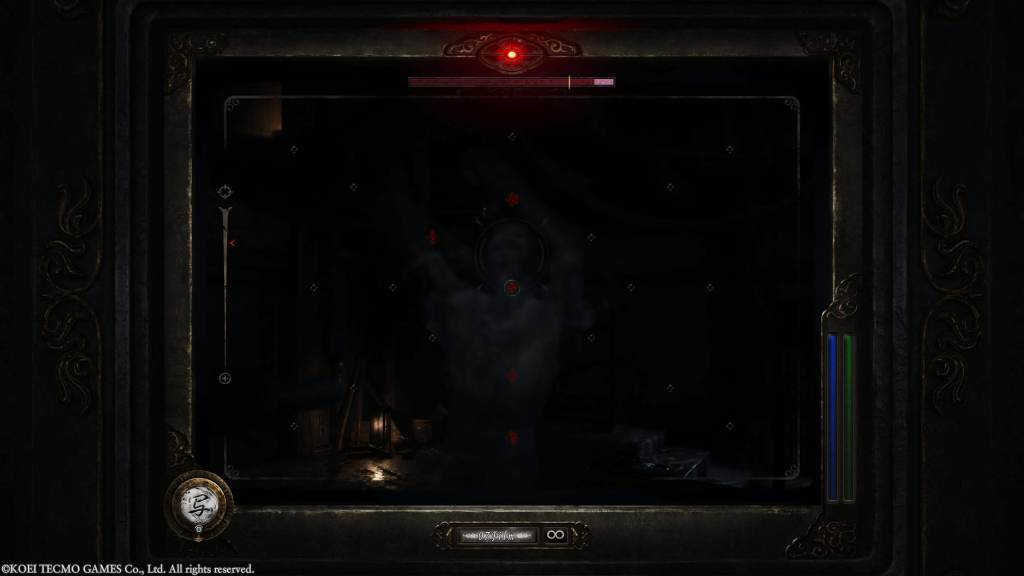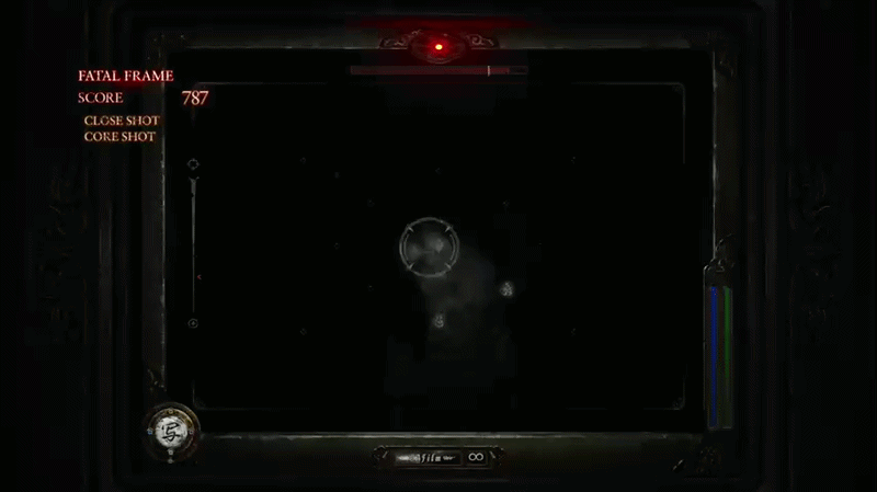 First I want to talk about the lock on feature. Locking on to a ghost was one of the big additions to combat introduced in the modern games. This is mainly because those games featured motion controls for their aiming and it could be a struggle to stay focused on a ghost’s face. This was a struggle in the classic games too but more due to the clunky controls. With the lock on feature, the camera would focus directly on the face, keeping it in the center of frame, meaning that the only challenge for getting a Fatal Frame was nailing the timing. And I’ll admit, I’ve never been a huge fan of this. To me, it made combat way too easy most of the time. Granted, I still vastly prefer the modern games’ combat over the classics’ just due to how less clunky and frustrating it could be but still! I bring this up mainly to say that the remake actually changes the lock on in a way I really like! Now instead of putting the ghost’s face directly in the middle of the frame at all times, the lock on just insures that the ghost’s face will not leave the frame. While this does mean you still mostly just need to wait and time your shots, it doesn’t feel so controlling and does give room for errors to be made. It also very much let’s the player appreciate the ghosts and their animations that much more! The reason this exists though isn’t to cater to people like me however, instead this more loose lock on is in service of the other change to combat I enjoy. The Focal Points!