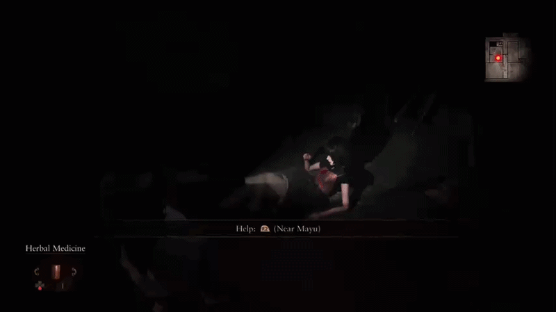 Let’s start by talking about how they addressed this in the exploring bits! For one, Mayu doesn’t follow you exactly meaning she won’t be boxing you in anymore, and even if she did, she’ll now move out of the way instead of getting shoved! Nice changes but nothing compared to how they fixed the issue of her lagging behind. Now when you want to book it with Mayu in toe, you can just hold her hand! On paper, it’s a really simple change but it’s also very effective! For one it means you can rush as much as you want without leaving your sister behind. It also shows how close the two are and that Mio is making good on her promise to always be with Mayu and look out for her! Even better than that, there is another big reason to hold Mayu’s hand and it’s the fact that doing this heals you. Now Mayu won’t lag behind and the player has a reason to want to be close to her too! This also makes the sections where Mayu is gone more effective since if the player isn’t connection with her on a story level, they will at least be missing her for the healing! Mio also talks a bit more in cutscenes as well, but the main additions that really makes it feel like she cares about Mayu is a bit more subtle. When getting an item she needs to save her sister, Mio will often say to herself that she needs to hurry back and help Mayu. It’s a very small touch but one that helps to show that Mio really does care for her sister! And it’s far better than her continuing to be silent.